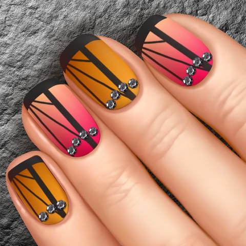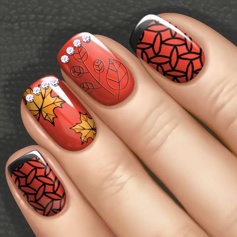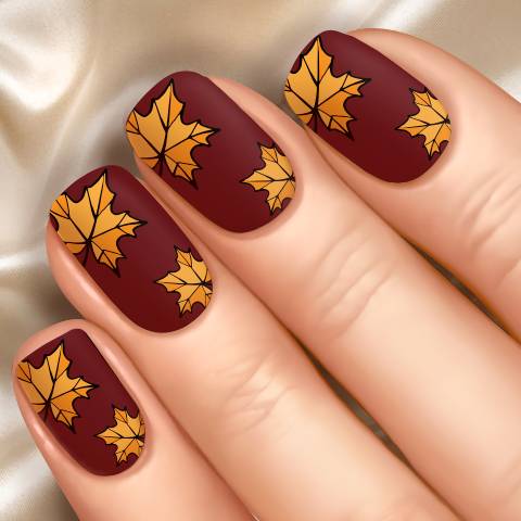 Даже такой развеселый маникюр можно адаптировать под грустную красоту осени. Мягкие переходы между осенними оттенками бордового, темно-оранжевого, шоколадного создадут тёплый и модный образ.